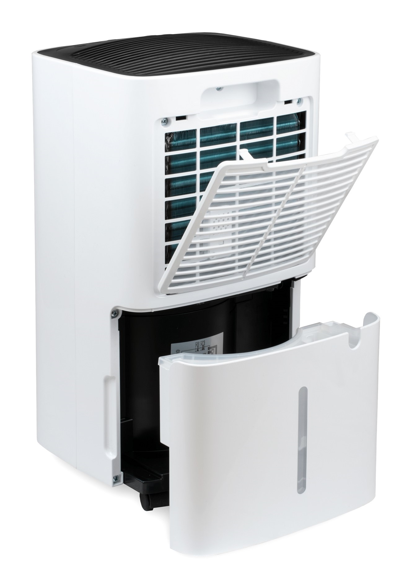 Condensatie-luchtontvochtiger Turbionaire SENSO 12 verwijdert tot 12 liter water per dag uit de lucht. De verplaatsbare ontvochtiger is optioneel uit te rusten met een HEPA + CARBON filter voor luchtreiniging. Turbionaire SENSO 12 heeft een strakke vormgeving met een mooie, ronde LED-vochtigheidsniveau-indicator. Je ziet aan de voorkant van de luchtdroger hoe het met de luchtvochtigheid gesteld is. Uitgerust met diverse standen: automatische modus, continue droogmodus en slaapmodus. Zijn ventilator is op 2 standen te schakelen. Turbionaire SENSO 12 is afgevuld met het milieuvriendelijke R290 koelmiddel. De energiezuinige en stille ontvochtiger beschermt gebouwen en hun inhoud tegen de schadelijke effecten van een hoge luchtvochtigheid.